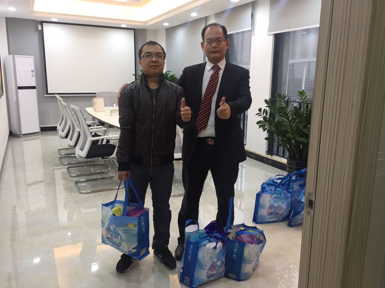 會(huì)議過(guò)后,公司高管向員工發(fā)放了春晚禮品,讓員工高高興興回家過(guò)好年,以表公司對(duì)員工的深切關(guān)懷!