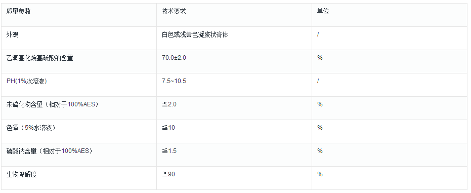 天然醇生成AEO為原料AES質(zhì)量標(biāo)準(zhǔn)參考:在25℃時(shí)